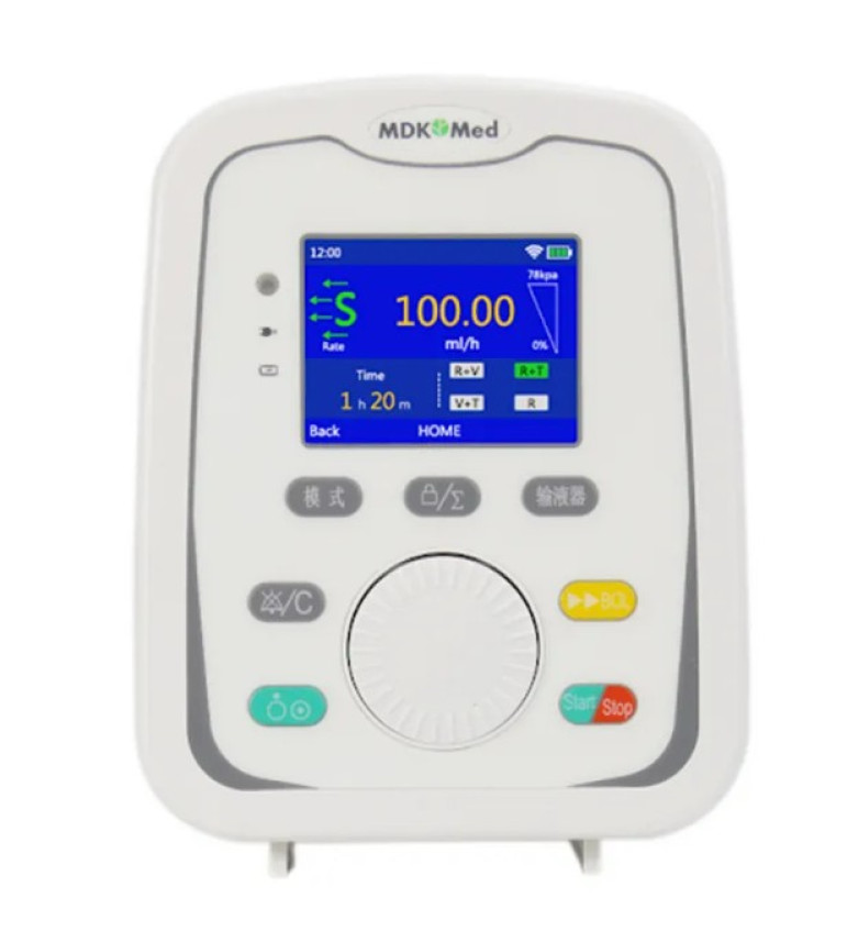 Com funções KVO, Bolus, 7 tipos de alarmes, 3 níveis de pressão de oclusão com sistema de remoção de oclusão inteligente, bloqueio automático de tela. 7 modos de infusão (taxa, taxa/volume, taxa/tempo (ml/h), volume/tempo, biblioteca de drogas, peso corporal, e micro. Função programável gradiente (rampa). Armazenamento de 200 registros.